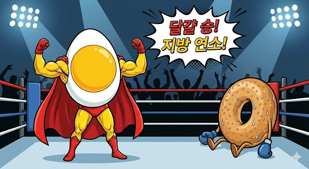달걀이 위장에서 든든한 방어막(쿠션) 역할을 해주어, 뒤따라 들어오는 탄수화물의 흡수 속도를 획기적으로 늦춰줍니다.