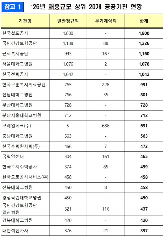 모든 기관이 똑같이 뽑지는 않습니다. 당신이 목표로 삼아야 할 핵심 기관을 먼저 파악하십시오. 한국철도공사(코레일)가 1,800명으로 가장 많은 정규직을 채용합니다. 국민건강보험공단도 1,226명을 선발하며 대규모 채용 열풍에 동참합니다.
