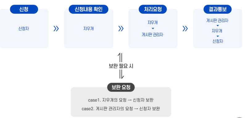 게시물이 올라가 있는 게시판 관리자에게 게시물을 삭제하거나,