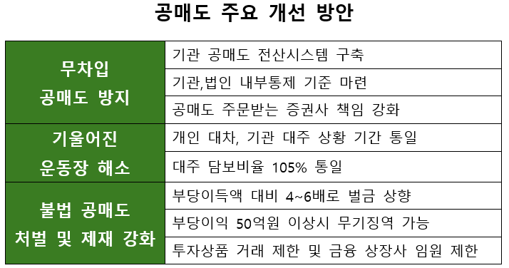 정부는 공매도 시스템을 개선하여 개인 투자자가 기관에 불리하지 않게